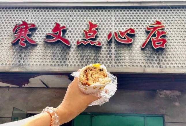 不用問店名,看到排隊的準沒錯!他家蛋餅攤得薄透金黃,刷上秘制醬料,撒上翠綠蔥花,香氣立刻撲鼻而來。大清早排隊的原因就在這兒,這就是弄堂早餐的靈魂所在!