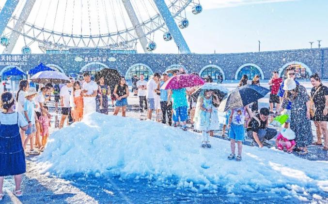 此外,市民和游客前往夢幻冰雪館和“盛夏飄雪”室外戲雪區(qū)打卡,還有機會獲得小禮物。
