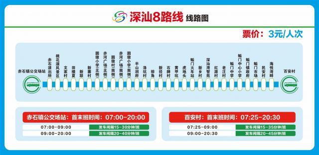 出站后無縫換乘深汕8路,一路直達(dá)百安村站就到啦。