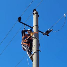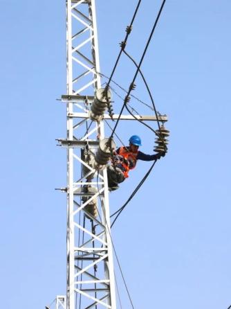 他們頭頂烈日,穿上腳扣,系好安全帶,登上15米的桿塔。面對精細的電纜連接作業(yè),他們細致入微、分毫不差,完成電纜中間頭制作,保證站場用電設備安全。