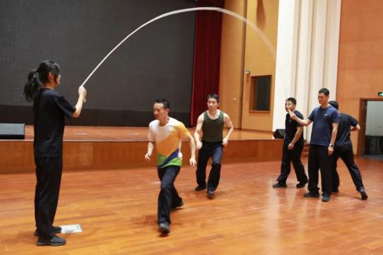 集體跳長(zhǎng)繩時(shí),長(zhǎng)繩劃出一道道優(yōu)美的弧線,干警們?nèi)缤?xùn)練有素的舞者,在長(zhǎng)繩的起落間輕盈穿梭。