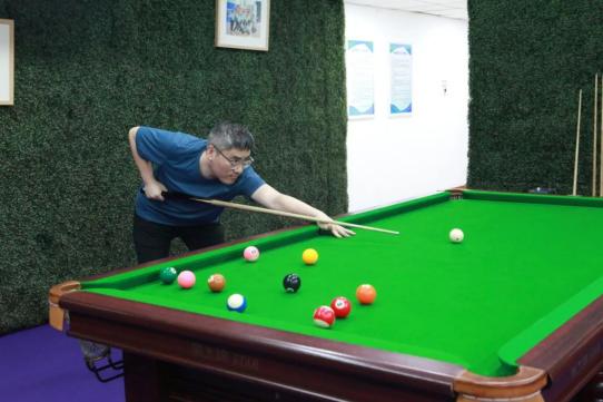 臺(tái)球比賽里,干警們鎖定目標(biāo)、氣定神閑地出桿,白球如離弦之箭般射出,“啪”的一聲,目標(biāo)球清脆落袋。