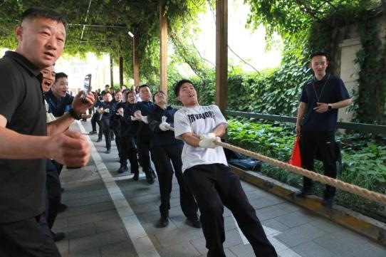 拔河比賽中,“一二一二一二……”的口號(hào)聲此起彼伏,緊握的繩索繃成一條直線。干警們壓低身姿、咬緊牙關(guān),每一寸移動(dòng)都充滿了較量。