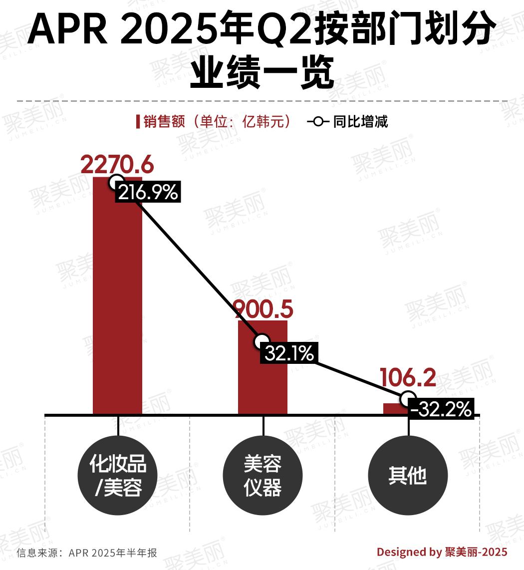 聚焦韓妝新秀APR 2025年H1業(yè)績,按部門劃分,APR旗下有化妝品/美容、美容儀器、其他三大業(yè)務(wù)板塊。