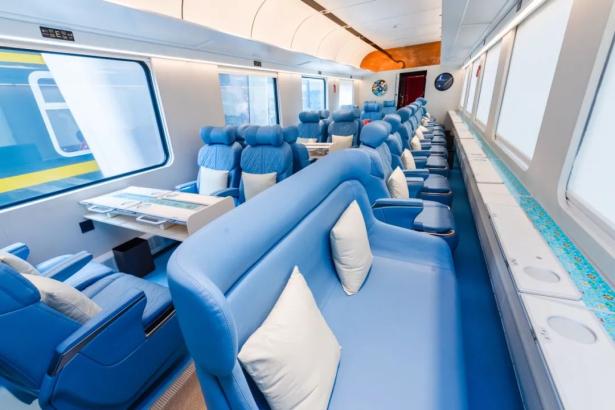 車廂功能布局創(chuàng)新,有卡座、頭等艙尊享座椅、私享包廂等多種選擇,您可在品茗觀景中自由切換。同時(shí),突出適老化、舒適化設(shè)計(jì),優(yōu)化座椅、便器尺寸和布局,增設(shè)防護(hù)報(bào)警功能。