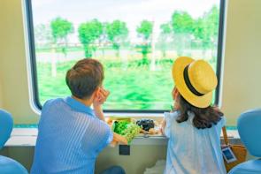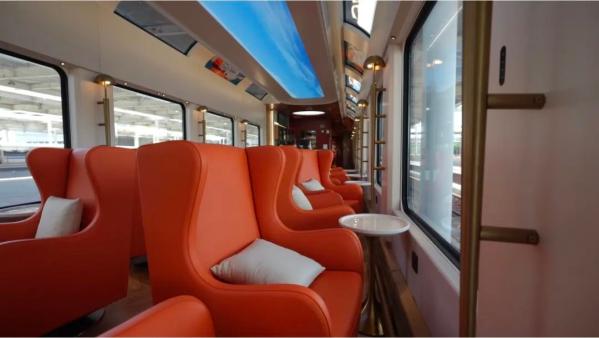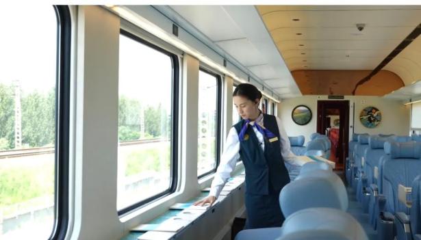 據(jù)悉,這趟全新打造的旅游列車創(chuàng)新功能設(shè)計(jì),從“交通工具”華麗變身為“移動(dòng)觀景客廳”。列車編組7輛,由全景觀光車、多功能娛樂(lè)車、主題餐車及4節(jié)觀光車組成,集觀光、餐飲、娛樂(lè)于一體。