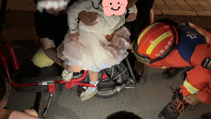 7月26日21時55分,呂梁汾陽一名男童的腿部不慎卡在電動自行車的部件之間。汾陽消防救援大隊消防救援人員迅速趕到現(xiàn)場進行處置,通過使用破拆工具對踏板處進行破拆,小男孩重獲自由。