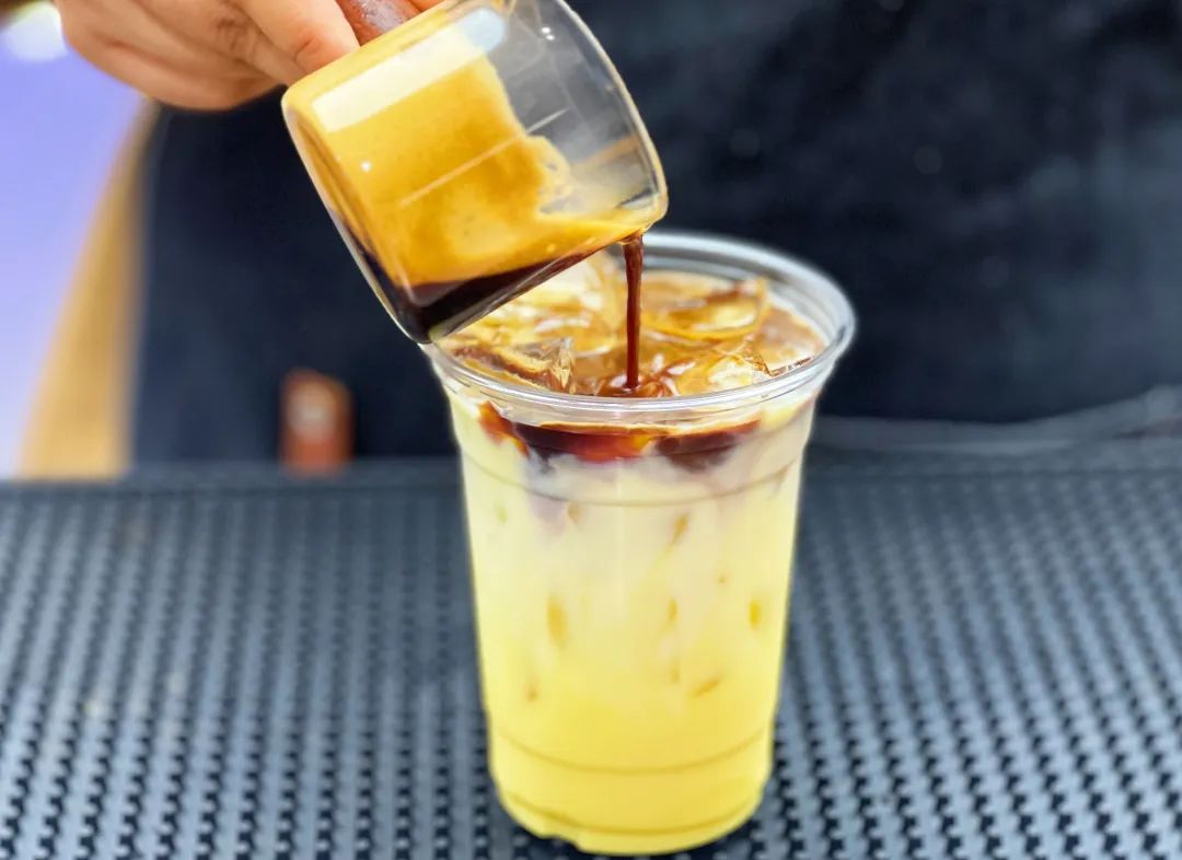 在制作飲品時(shí),黃金玉米乳呈現(xiàn)的乳黃色,能與咖啡、奶蓋等形成對(duì)比,打造分層效果,自帶傳播屬性。