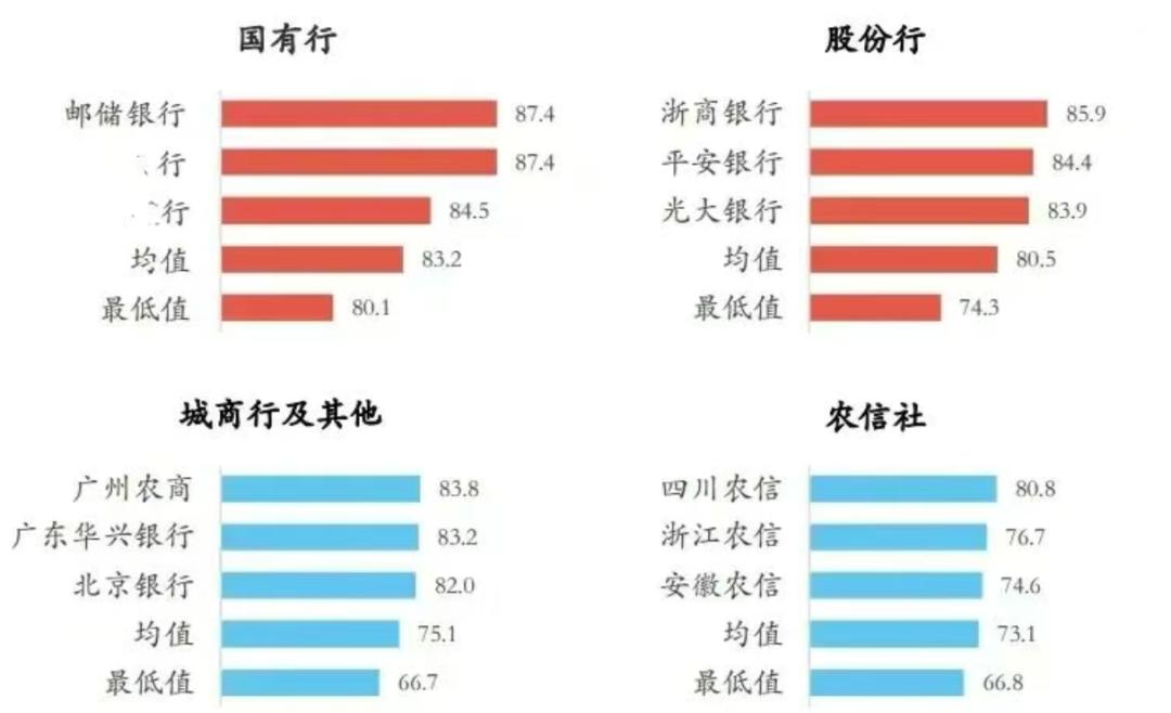 從結(jié)果看,交通銀行表現(xiàn)突出,農(nóng)業(yè)銀行靠后,其余四家各有優(yōu)劣,但整體智能化水平仍較低。