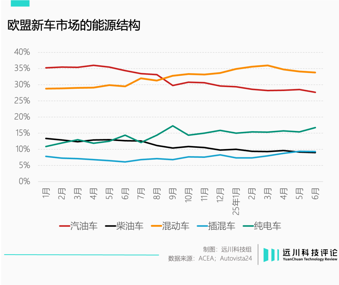 歐美市場(chǎng)基建不足、供應(yīng)鏈成本高、能源價(jià)格高等因素,限制了純電車型的普及,推動(dòng)了插混和混動(dòng)車型的銷售。但這也導(dǎo)致中國(guó)和海外市場(chǎng)出現(xiàn)分化。