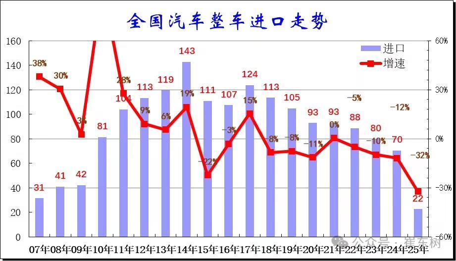 8月8日消息,乘聯(lián)分會(huì)秘書(shū)長(zhǎng)崔東樹(shù)于8月7日發(fā)布博文,報(bào)告顯示2025上半年中國(guó)進(jìn)口汽車(chē)數(shù)量為22萬(wàn)輛,同比下降32%,出現(xiàn)了近期少見(jiàn)的巨大跌幅,這表明汽車(chē)進(jìn)口市場(chǎng)在持續(xù)萎縮。