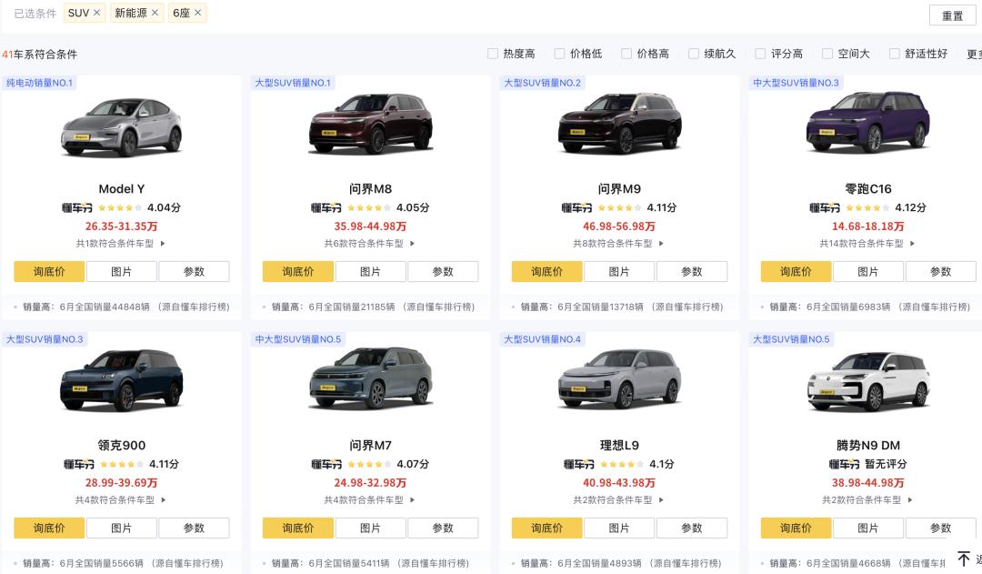 懂車帝統(tǒng)計(jì)的6座新能源SUV銷量排名