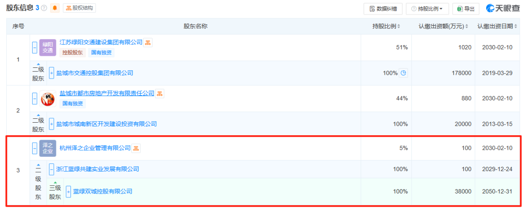 天眼查顯示,交投都市2025年3月成立,注冊資本2000萬元,藍綠雙城間接全資子公司仍持有5%股份。