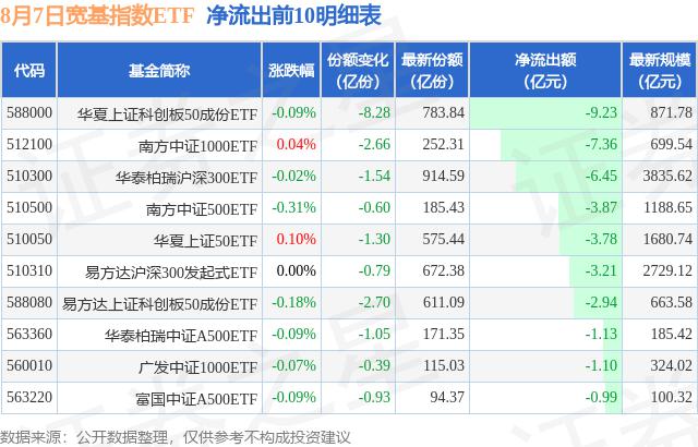8月7日寬基指數(shù)ETF資金凈流出49.21億元