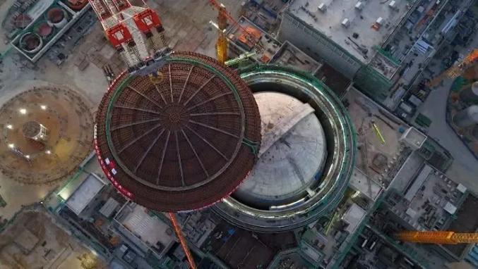 華能海南昌江核電3號(hào)機(jī)組核島外穹頂模塊順利吊裝就位(王學(xué)武 攝)