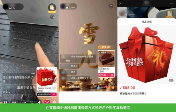 虛假/夸大宣傳“藏品高價變現(xiàn)”:在直播中高價售賣虛假文物、藏品、古董等,實際上用戶收到的是毫無價值的仿造偽劣品,商家承諾的“高價回收”更是虛假宣傳。