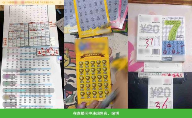 違規(guī)售彩、賭博等:在直播間中違規(guī)售彩、賭博。