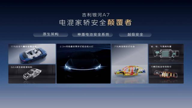 吉利銀河A7是首款基于GEA全球智能新能源架構(gòu)打造的電混轎車,繼承吉利安全基因。