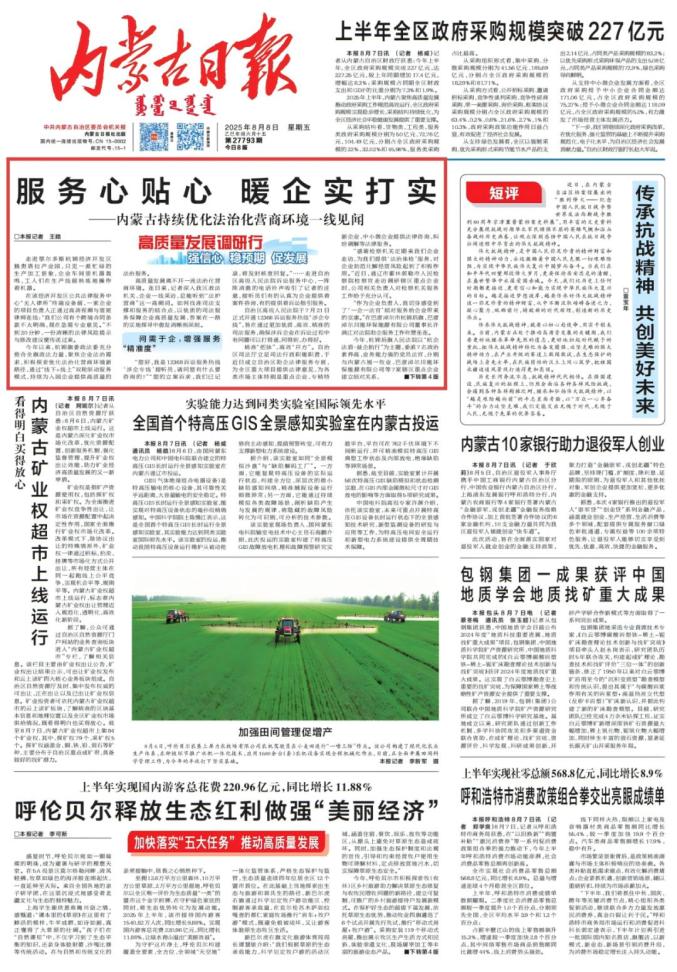 《內(nèi)蒙古日?qǐng)?bào)》(2025年8月8日1版)。