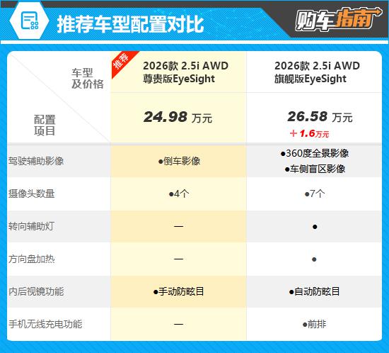 綜合來看,如果您正在關(guān)注2026款斯巴魯森林人,那么2.5i AWD尊貴版EyeSight值得您優(yōu)先考慮。