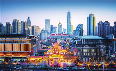 《中國國家地理》收錄了古文化街的航拍作品(李光睿攝)。在社交媒體上,“天津航拍”“天津夜景”等關(guān)鍵詞下的視覺作品或是絢麗多彩,或是巍峨壯觀,總能吸引人們的目光。在瀏覽的過程中,一張夕陽下“天津之眼”的照片讓記者感到驚艷。