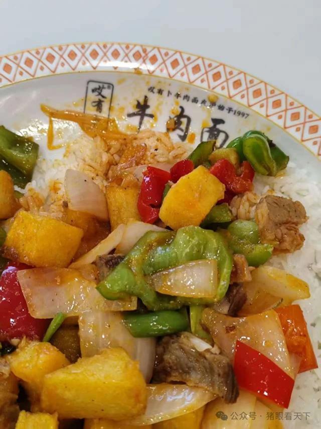 隨便找了個蘭州拉面館,點了一份土豆牛肉蓋澆飯、一份蔥爆羊肉拌面,還來了兩份店家自制酸奶。