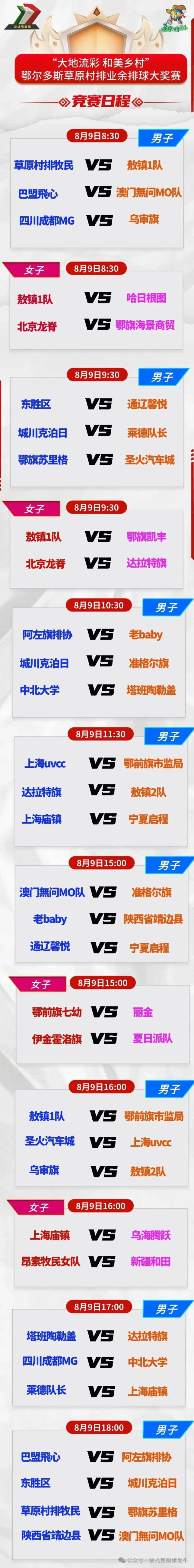 8月9日鄂爾多斯草原村排業(yè)余排球大獎賽競賽日程公布