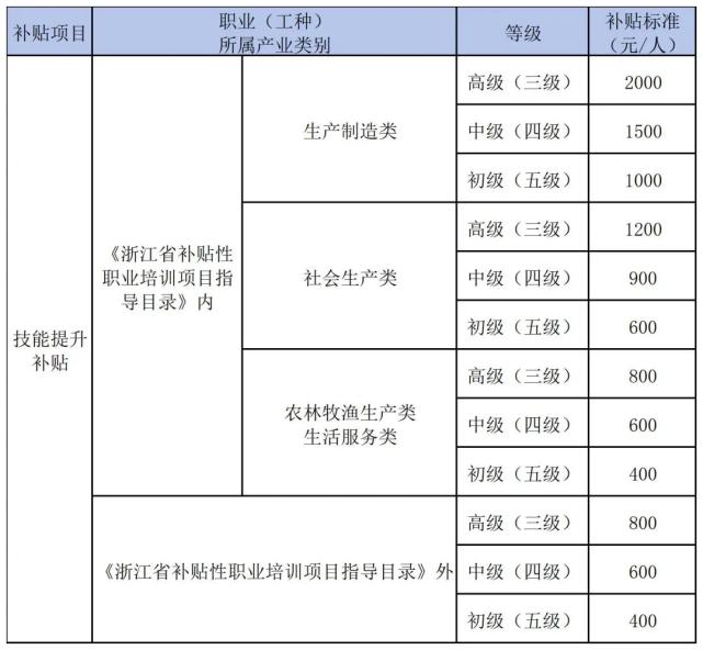 技能提升補(bǔ)貼根據(jù)不同的職業(yè)(工種)、等級(jí)實(shí)行項(xiàng)目清單式和標(biāo)準(zhǔn)差異化管理。具體補(bǔ)貼標(biāo)準(zhǔn)見下表:
