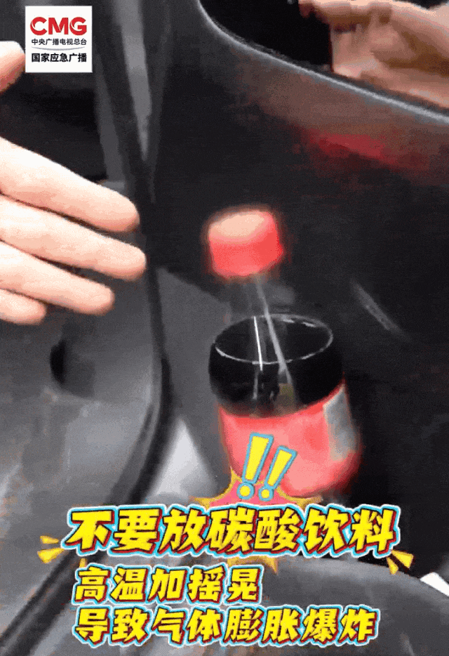 碳酸飲料中含有大量的二氧化碳,受熱容易膨脹,若此時還將汽水來回晃動,瓶內(nèi)壓力不斷增大,有爆炸風險。高溫加上搖晃,瓶內(nèi)壓力增大會有爆炸風險。