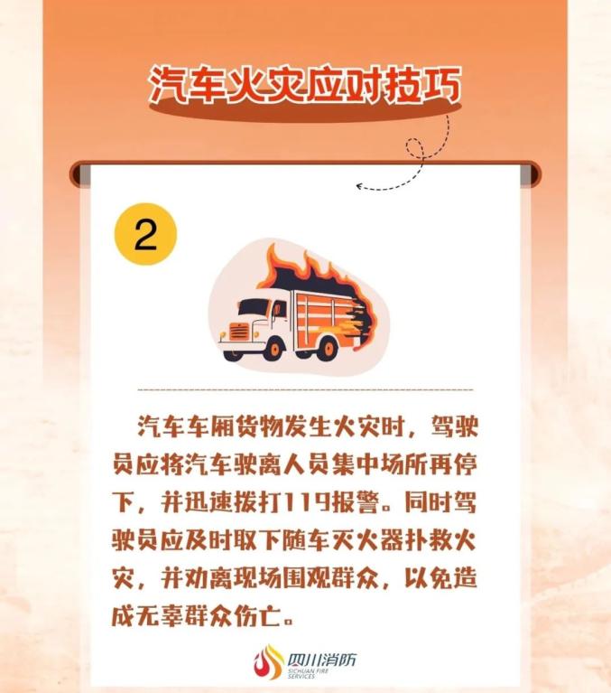 了解了隱藏在車內(nèi)的安全隱患后,大家還得掌握好汽車火災的應對技巧,防患于未“燃”。下面這份安全提示請收好。