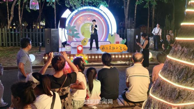 除了燈光秀,太陽島還舉辦了豐富的夜間演藝活動。在遇見·哈爾濱的舞臺前,街頭藝人的歌聲悠揚(yáng),特色民俗表演接連不斷,讓游客在欣賞美景的同時,感受濃厚的文化氛圍。不少家庭帶著孩子來此嬉戲;年輕人在湖邊漫步,享受浪漫時光;外地游客則用相機(jī)記錄下這迷人的夜景。