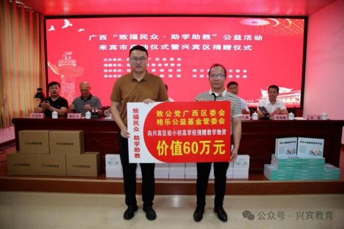 8月6日上午,“致福民眾·助學(xué)助教”公益捐贈(zèng)儀式在興賓區(qū)教育體育局盛大舉行。致公黨廣西區(qū)委會(huì)聯(lián)合格樂(lè)公益基金管委會(huì),向興賓區(qū)學(xué)校捐贈(zèng)了一批總價(jià)值達(dá)60萬(wàn)元的教學(xué)資源設(shè)備,以此助力區(qū)域教育信息化建設(shè)。