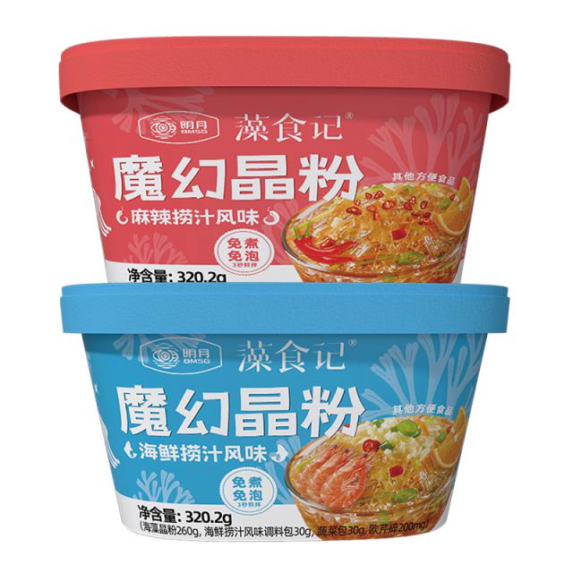 日常工作忙碌,既渴望美食又怕胖?明月藻食記海藻魔幻晶粉就派上用場了。它320g/盒大容量,有海鮮撈汁風(fēng)味和麻辣撈汁風(fēng)味兩種選擇,3分鐘就能速享健康美味。該產(chǎn)品以天然海藻為原料,富含膳食纖維,低熱量、低脂肪,美味無負(fù)擔(dān),是輕食代餐、解饞宵夜的優(yōu)質(zhì)選擇。而且免洗免泡,開水沖泡或微波3分鐘,晶瑩剔透的海藻晶粉瞬間“復(fù)活”,Q彈爽滑,省時(shí)省力,拯救嘴饞時(shí)刻。