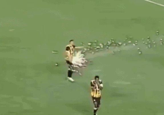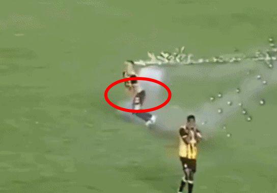 足球賽場上,瘋狂事件時常上演。據(jù)英國媒體《太陽報》報道,在玻利維亞甲級聯(lián)賽中,一名球員被看臺上發(fā)射的煙花擊中下體,疼得當(dāng)場原地翻滾。