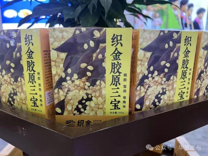 走進百縣百品織金品牌館,以“宮保雞”為元素的包裝色彩明快,竹蓀、皂角米、南瓜制品等“織金出品”琳瑯滿目。館內(nèi)大屏播放著宣傳片,工作人員熱情介紹: