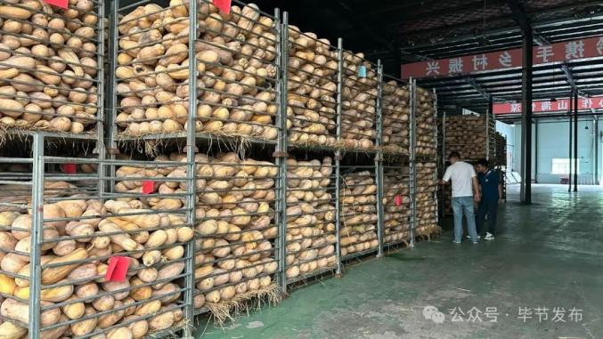 織金縣農(nóng)耀農(nóng)業(yè)開發(fā)有限公司里堆放的南瓜(來源:天眼新聞客戶端)