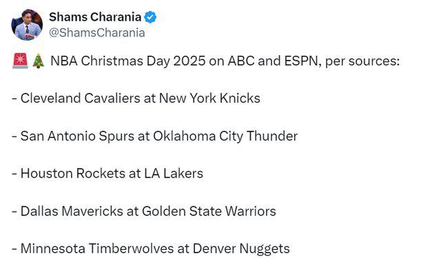 尼克斯與騎士的對(duì)決(大概率安排在東部時(shí)間中午時(shí)段,這是尼克斯隊(duì)每年的常規(guī)主場(chǎng)時(shí)段)是唯一一場(chǎng)全東部球隊(duì)的較量??紤]到東部頂尖球隊(duì)紛紛遭遇傷病困擾,這并不令人意外,但也從側(cè)面反映出——至少在紙面上—— 2025 - 26賽季聯(lián)盟的實(shí)力天平存在明顯傾斜。