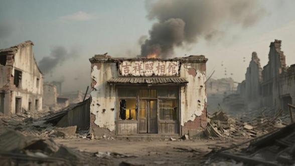 如果說蘇柳昌的故事是暗房里的一束強光,那么老金一家的經(jīng)歷則是底片上層層疊疊的陰影。這家原本用鏡頭記錄秦淮河畔婚喪嫁娶的照相館,在戰(zhàn)火中被迫成為了“歷史顯影液”的容器。那面繡著“大好河山”的背景布,在影片高潮時化作了燃燒的旗幟。當林毓秀抱著底片穿越火海,鏡頭掃過南京城門、明故宮飛檐、中華門城樓,它們就像被點燃的星子,從焦土中升起無數(shù)模糊的身影。這些從未被“正式”記錄的面孔,在虛實交織的光影里,拼湊出了比任何“官方影像”都更為完整的中國。
