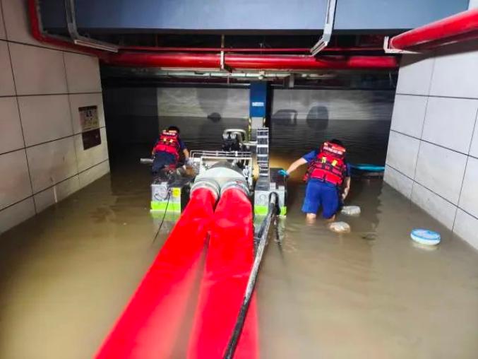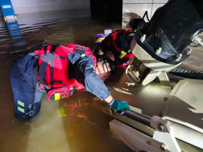 面對巨大的排水量和復(fù)雜的車庫環(huán)境,隊員們毫不退縮?!褒埼背樗O(shè)備全力運(yùn)轉(zhuǎn),24小時不停轟鳴;隊員們實(shí)行高強(qiáng)度輪班制,每人每天工作超過12小時,日夜堅守在積水中,爭分奪秒地降低水位,努力減少業(yè)主的財產(chǎn)損失。