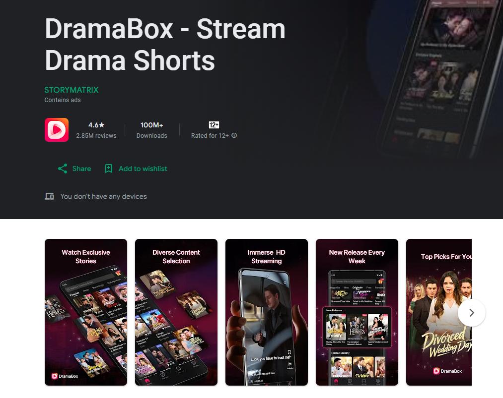 DramaBox是北京點(diǎn)眾科技股份有限公司旗下的海外短劇平臺(tái),有數(shù)據(jù)顯示其2024年全球預(yù)估收入1.47億美元,內(nèi)容包括逆襲、情感和男頻等標(biāo)簽。