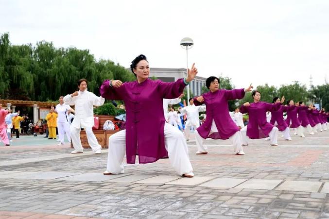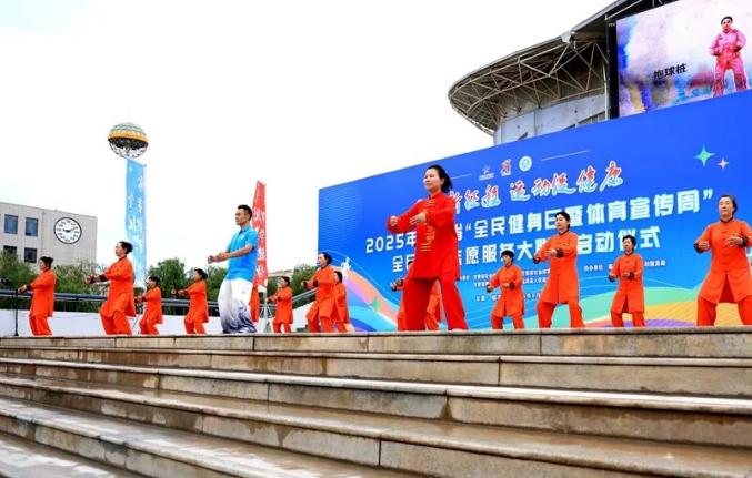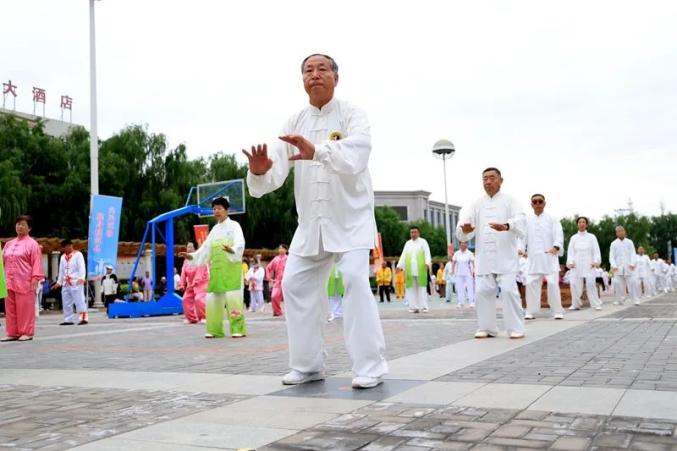 大家一起練太極八段錦,共同享受健康生活。8月8日,2025年甘肅省“全民健身日暨體育宣傳周”全民健身志愿服務(wù)大聯(lián)動暨臨澤縣全民健身集中引領(lǐng)示范活動在縣文化體育廣場舉辦?;顒蝇F(xiàn)場,八段錦老師帶領(lǐng)全民健身志愿服務(wù)活動培訓(xùn)班學(xué)員和全縣健身愛好者,完整展示了八段錦中“兩手托天理三焦”“左右開弓似射雕”等經(jīng)典招式。他們動作舒展連貫,氣息沉穩(wěn)悠長,讓參與者真切感受到了功法的韻律與力量。此外,還進(jìn)行了二十四式太極拳的展示,隊員們動作舒展流暢、剛?cè)岵?jì),充分展現(xiàn)出太極拳的獨(dú)特韻味,贏得了現(xiàn)場觀眾的陣陣掌聲。(程莉 汪永凡 馬振瑋)