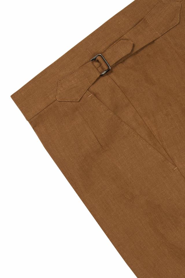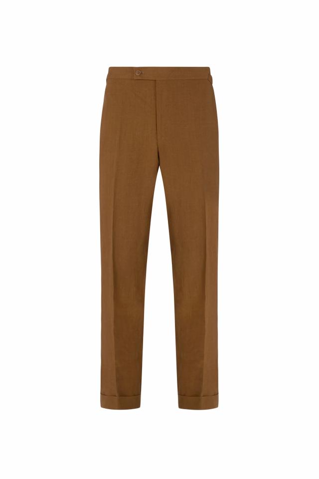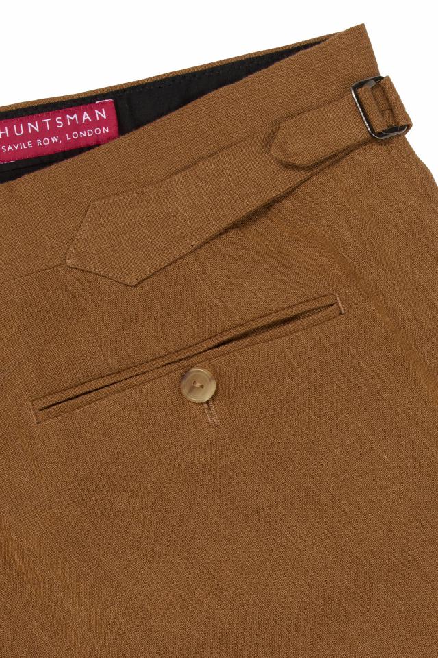 若你想感受亞麻長(zhǎng)褲帶來(lái)的正式感,源自倫敦薩維爾街(Savile Row)的紳裝經(jīng)典品牌 Huntsman 會(huì)是很好的選擇。作為薩維爾街最精致、歷史悠久且不斷創(chuàng)新的定制服裝品牌之一,Huntsman 堪稱頂級(jí)手工服飾制造商。對(duì)卓越質(zhì)感的不懈追求,是 Huntsman 西裝的核心特質(zhì),這款 Tobacco Linen Trousers 自然也不例外。
