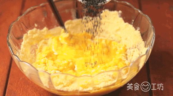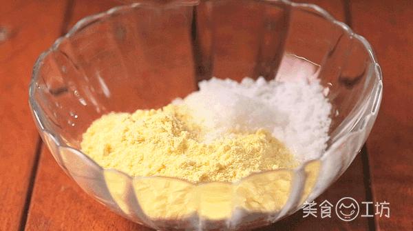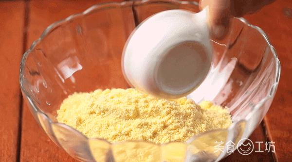 1. 在玉米面里加入糖。
