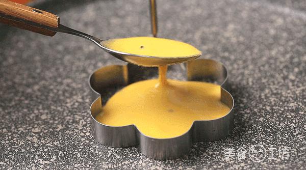 4. 把平底鍋預(yù)熱,在模具里舀入一勺面糊,煎到兩面微微焦黃就可以了。