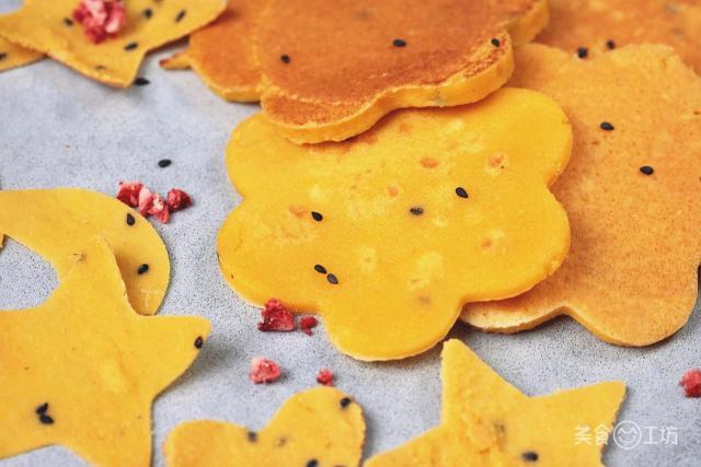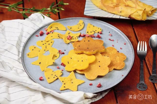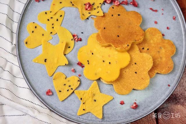 玉米粉作為這道美食的主角,做成雜糧餅后,口感并不像想象中那么粗糙難咽。在烙制過程中,會散發(fā)出淡淡的、香甜的玉米味兒。厚餅比較軟,薄餅則比較脆,用模具一改造,輕松搞定挑食的寶寶!