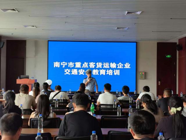 8月7日下午,南寧交警支隊聯(lián)合市交通運輸局、廣西汽車物流行業(yè)協(xié)會開展了重點客貨運輸企業(yè)交通安全教育培訓(xùn),對高風(fēng)險運輸企業(yè)安全員及有3條以上違法記錄的客貨運駕駛?cè)诉M行精準宣教。