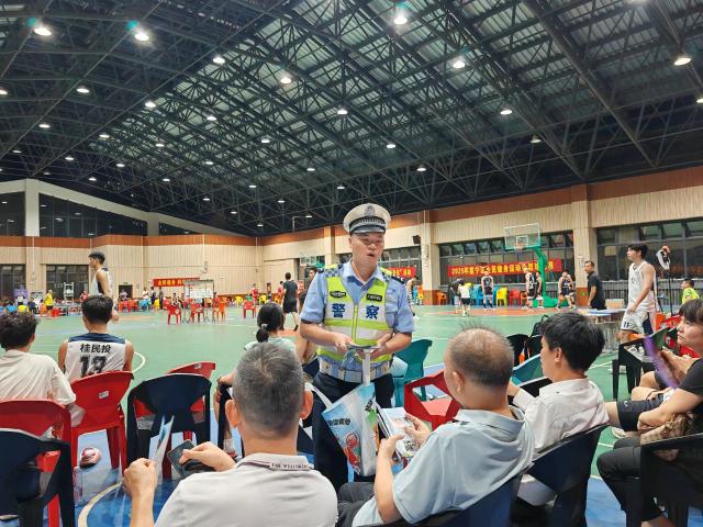 8月5日晚,2025年武鳴第十四屆俱樂部籃球聯(lián)賽在武鳴區(qū)總工會球場火熱開賽。南寧交警十五大隊抓住賽事聚集群眾的好時機,宣傳警員來到比賽現(xiàn)場開展交通安全宣傳,讓觀賽群眾在享受籃球比賽的同時,也能學(xué)到實用的交通安全知識,提升交通安全意識。