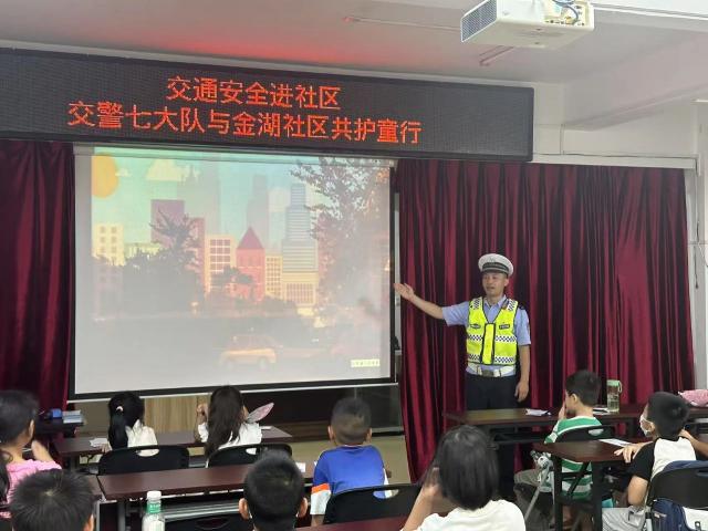 8月5日上午,南寧交警七大隊走進金湖社區(qū),為孩子們上了一堂別開生面的暑期青少年交通安全小課堂。