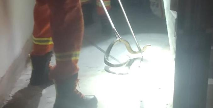 僅用1分多鐘,消防員就將眼鏡蛇成功捕獲,并裝入密封的捕蛇袋中。