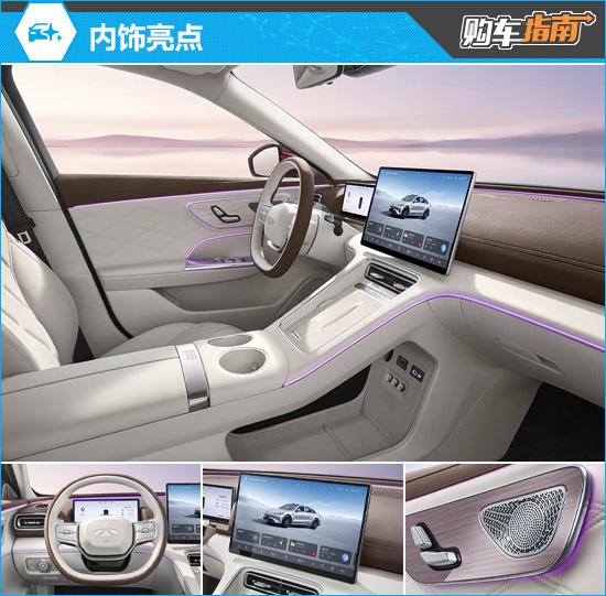 車身側(cè)面線條流暢優(yōu)雅,貫穿車體的鍍鉻飾條盡顯行政級(jí)轎車的典雅,門把手采用半隱藏式設(shè)計(jì),有觸摸感應(yīng)式和機(jī)械式兩種開啟方式。尾部配備修長(zhǎng)的貫穿式尾燈,整體設(shè)計(jì)協(xié)調(diào)統(tǒng)一。它還配備電動(dòng)尾翼,支持速控、語(yǔ)控與屏控三種操作模式,燈組與尾翼處融入律動(dòng)氛圍燈設(shè)計(jì),有15種模式、256色調(diào)節(jié)。